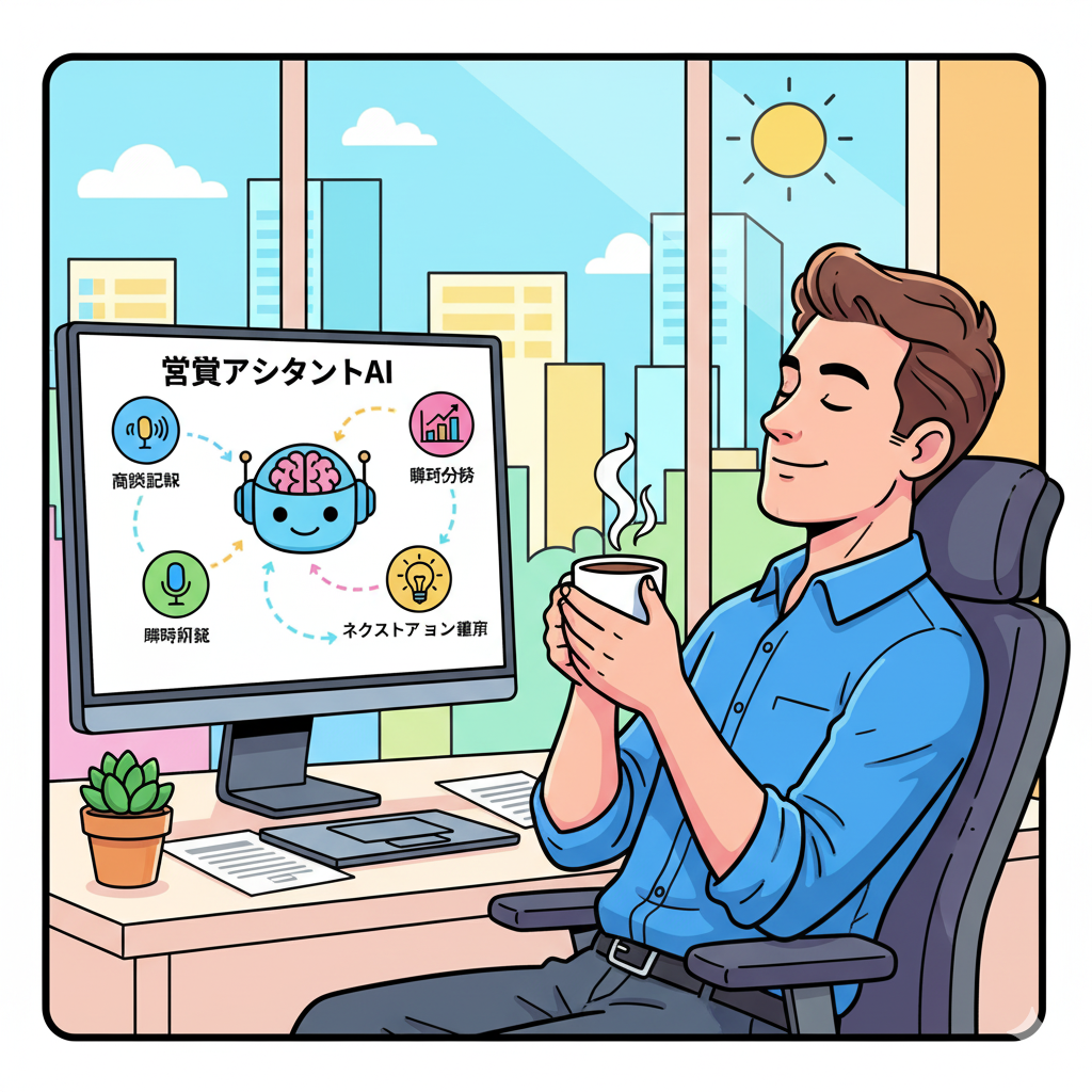 - ① 営業アシスタントAI:商談の議事録(テキスト)をアップすると、「次に取るべき具体的なアクションリスト」と「競合に対する優位性を強調する提案文」を瞬時に作成。