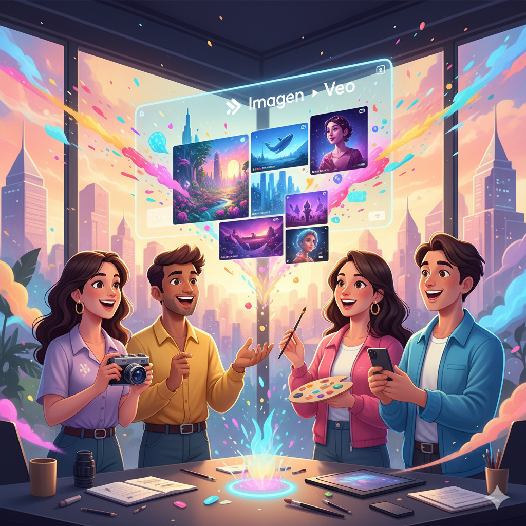 ImagenVeoの力を使えば、プロンプト(言葉)一つでプロ級の画像や動画が作れます。これにより、デザイナーではないビジネスパーソンも、アイデアをビジュアル化できるようになり、自己表現の可能性が大きく広がりました。