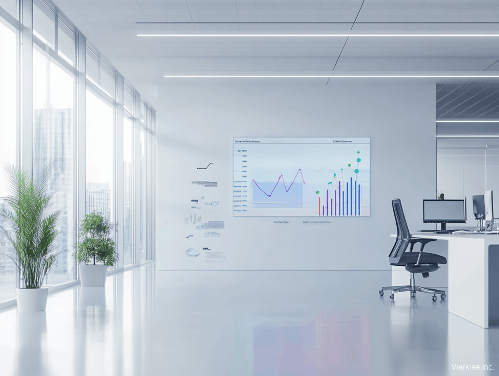 Minimalist modern office space with floating holographic charts, clean white background, 3D render, smooth texture, professional concept art –ar 4:3 –v 6.1 - ぶーちゃん補足: –ar 4:3 はPowerPointやGoogleスライド向けの比率です。「clean white background」を指定すると、資料全体の視認性がぐっと上がります。